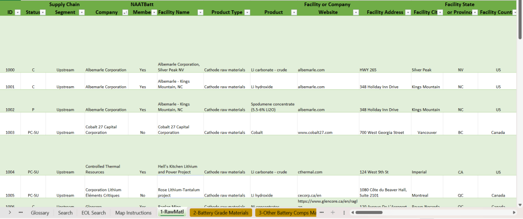 The organization also maintains a comprehensive database of companies in every segment of the lithium-ion battery industry from raw material refinement to battery manufacturing and end-of-life recycling in the US and Canada. This list not only helps companies find one another, but also serves as a critical resource for identifying potential supply gaps and developing long-term strategies for entrepreneurs, researchers, policymakers, and students. NAATBatt releases this database free of cost, making it one of the most valuable and accessible sources of data I’ve come across in the US energy sector. I recommend downloading the database and taking a look whenever you have the chance.